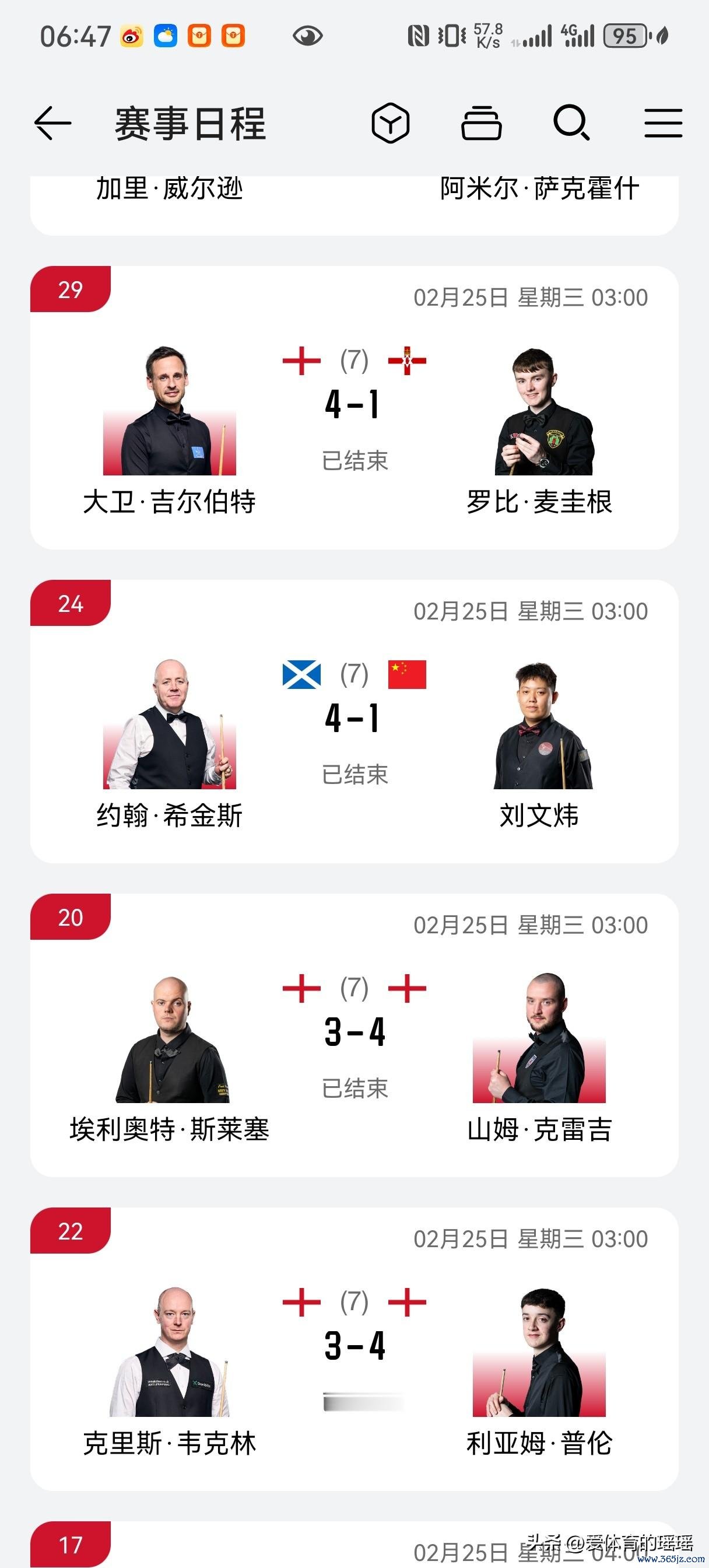 北京时间2026年2月25日凌晨,2026斯诺克威尔士公开赛首轮激战继续,兰迪德诺赛场冷门不断,多位种子选手与世界冠军意外折戟,赛事悬念拉满。