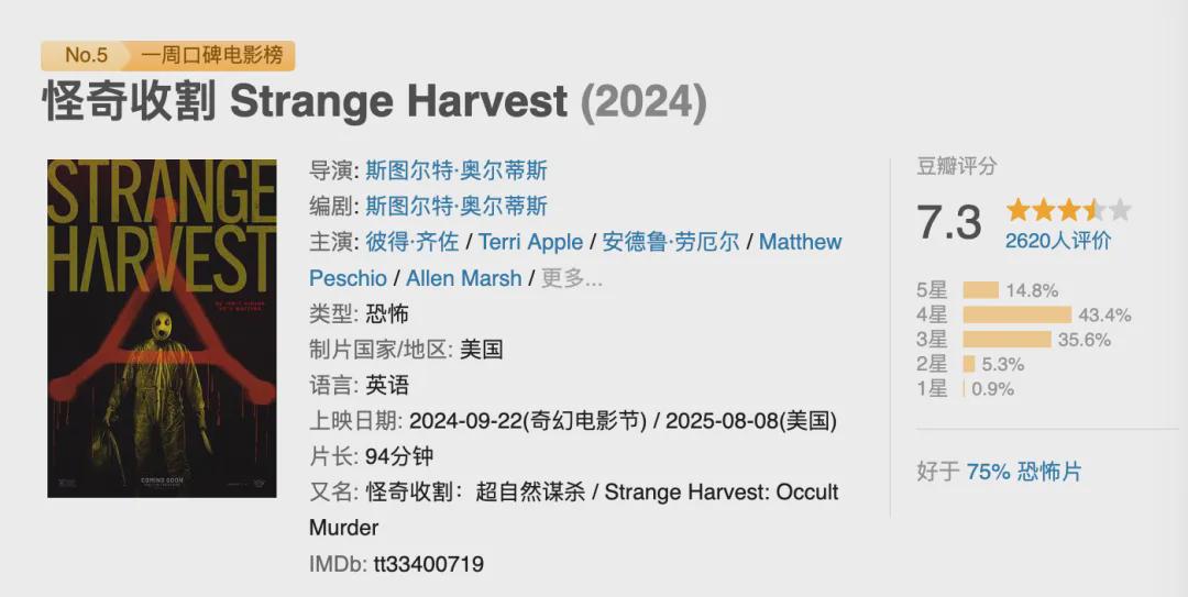 本片是上周的豆瓣一周口碑榜新上榜影片,现在是7.3分。